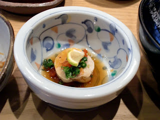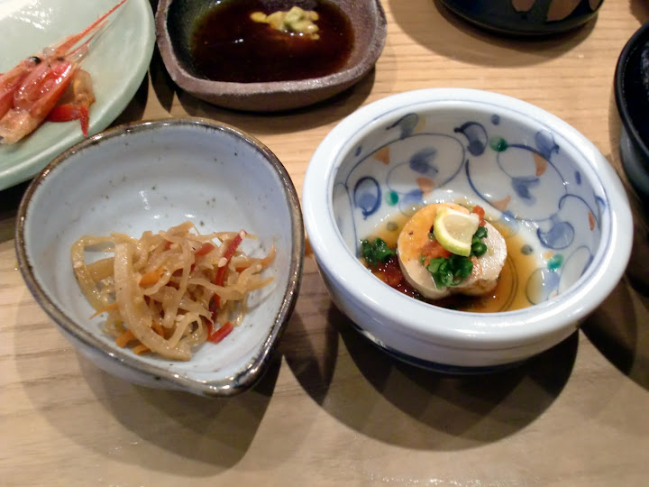 前菜竟然有兩款再加麵豉湯,其中右手邊果個係凍鮟鱇肝配酸汁,醒胃好食。