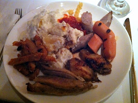 熱葷方面,有兩隻烤腸,雞翼都不俗;疑似豬頸肉麻麻,不過都不及鴨胸難食;炒飯無試過,至出色都係有螺絲粉配上極濃Carbonara或肉醬醬汁,與及忌廉焗薯。不過我想話:最後呢兩味,好易整咋播!
