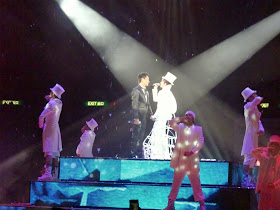 然後她到台中跟穿上白色禮服的舞蹈員一起,先唱出真命天子,原本不大喜歡這歌,到昨晚發現就像她的心聲,是那麼真實。舞台頂的大銀幕在歌末播出丁子高的樣子,全場歡呼。然後她唱飛女正傳,中段丁子高現身,兩夫妻合唱,現場氣氛高漲到不得了,那一刻,很感動,感動得竟然眼有點濕!飛女遇上她的真命天子,親口對她唱出『世界將我包圍,誓死都一齊』,二人就像結婚蛋糕般在台中唱歌相擁,彷彿告訴我們:相信愛情,總有一天,可以等到的。