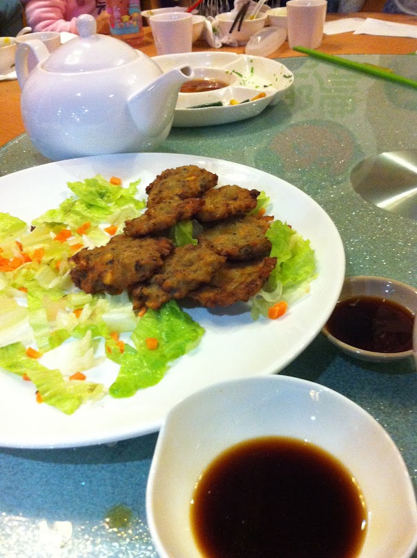 之後的南乳粗齋煲是平凡中見功夫:在場多位吃慣素的都表示,料多,南乳味香,炆得出色,所以,又是另一道大家十分喜歡的菜式。哈,吃得太高興,這個沒有拍照。然後另一個大家都大讚的,是生煎蓮藕餅!首先,十二人份,竟然有廿四件!我吃著才記得拍照,蓮藕多,不會吃著一口粉,而且煎得香口又不會油膩,難怪,很快一掃光。