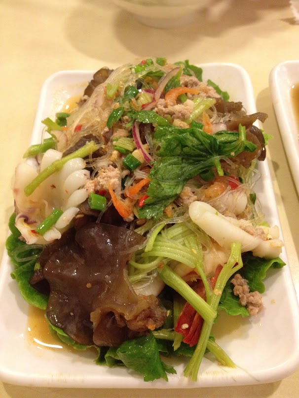 這個海鮮粉絲沙律實在很好,料很多,而且新鮮爽口,特別是蝦跟魷魚,味道微辣,不過再吃下去就發覺其實都幾辣。若果整個沙律溫度再低一點,就十分完美。