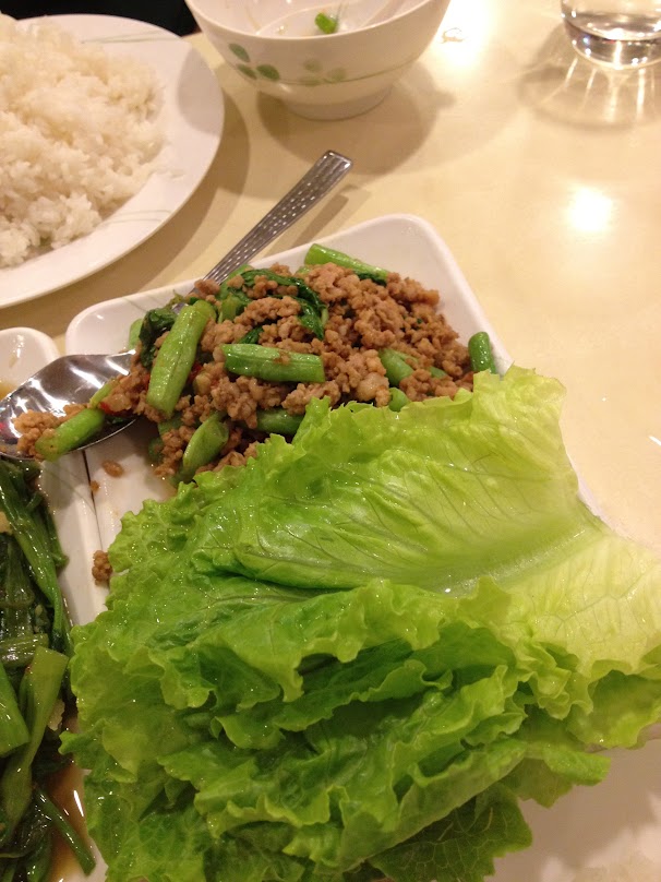 泰式辣肉碎生葉包,以為量少嗎?不!生菜葉下都是!先讚生菜葉又是新鮮爽脆,而且肉碎他們加入豆角,是很泰北菜的炮製方法。我覺得這個不夠香口,但不油膩又是真的。