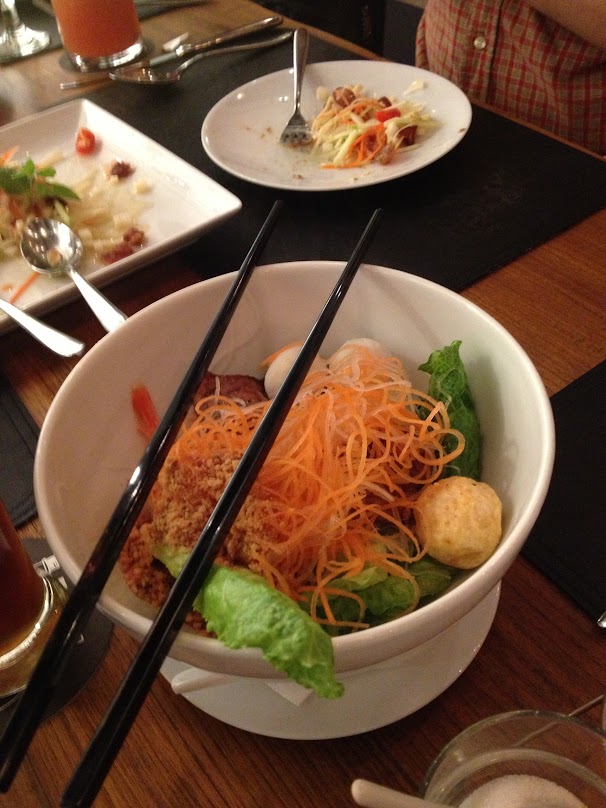 又係另一道好有趣既菜,我上網頁搵到疑似個名叫Complicated Noodle -Noodle sheet + fresh lettuce leaves + minced pork sauce + chili sauce. You need to do a bit of work here but worth every bite。就係咁囉,又幾好食架。