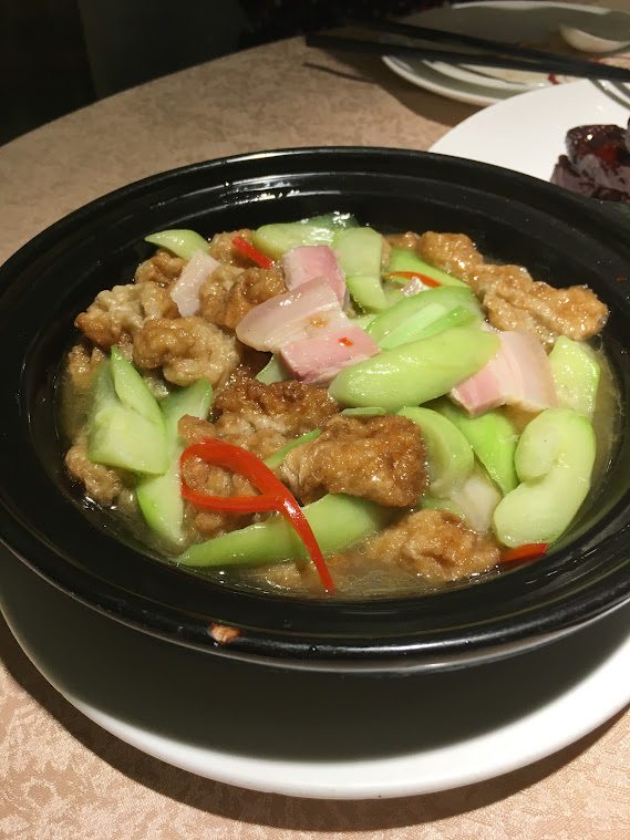 咸肉絲瓜麵筋煲,應該係當晚比較清既菜式,無味精而且不油膩。