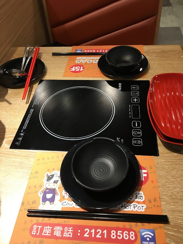 先看看環境:店是新開的,非常企理而且不會迫,當然通風可以做得好一點,但座位是很不錯,而且那個尚朋堂電爐,火力很猛,檯頭更放了一壺清湯,方便到連叫侍應添湯都不用,當然要麻辣湯,還是可以要求的。