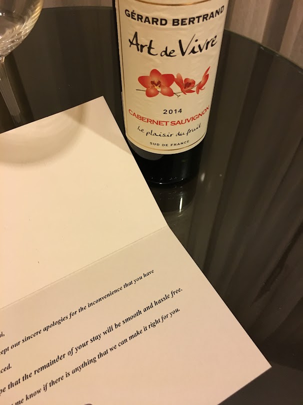 一張卡,一支2014年紅酒,一封信解釋。其實沒有期望有什麼著數,只是這樣的回應真的很快,是幾喜出望外的。那支紅酒,我沒有喝,亦沒有帶走(因為我不想將行李寄倉阻我回家的時間),我送了給當地的同事。