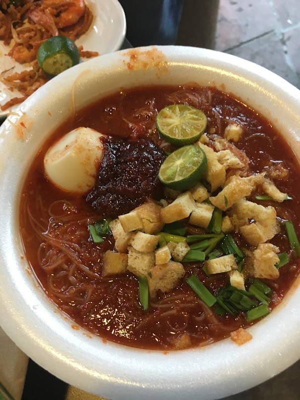 炒福建蝦麵,全場最多人排隊!喂真好食,濕潤而且每條麵條都被汁包裹著,配上辣椒醬及青檸汁,一流!