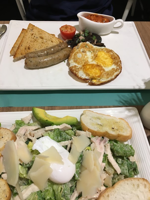 圖上是朋友的早餐(我覺得幾搵笨),圖下就是Ceasar's Salad,好食,沙律汁剛好而且不會很膩。