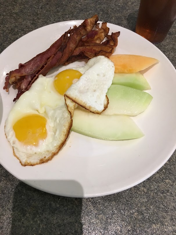 上方係同學既早餐:我有試過果個羅宋湯通粉,普通啦,個羅宋湯一般無驚喜。不過其實大家應該見,就係我同佢果兩碟配上既,係密瓜與哈密瓜!喂堅甜堅好食,香港睇怕好難囉。