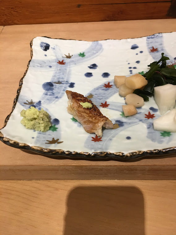 店家很好,看見眼前的是外國客人,盡量在每一道菜都特意用iPad找來那條魚的英文名字介紹一下,所以,我這一餐的紀錄,完整得多。