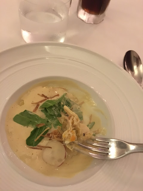 先介紹這個:這是主廚非常有趣的創意料理:炮製一道法式越南牛河,用上牛肉清湯,細小的螺絲粉,牛肉粒,青瓜薯仔紅蘿蔔,清甜的牛肉湯,配上所有食材,是非常驚喜的,而且又能飽肚。