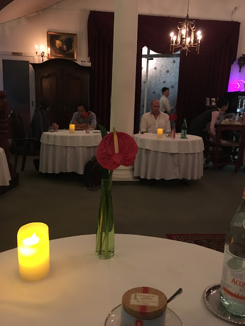 我想大家都知道越南曾經是法國的殖民地,所以無論建築物與食物都有濃濃的法式風味,法國菜自然不會讓人失望。這家是一位法籍大廚主理的,餐廳座位不多,有露天與室內的,我早就選了室內的位置,然後被安排坐在一張圓桌。當然,不只我一個是孤獨的美食家。