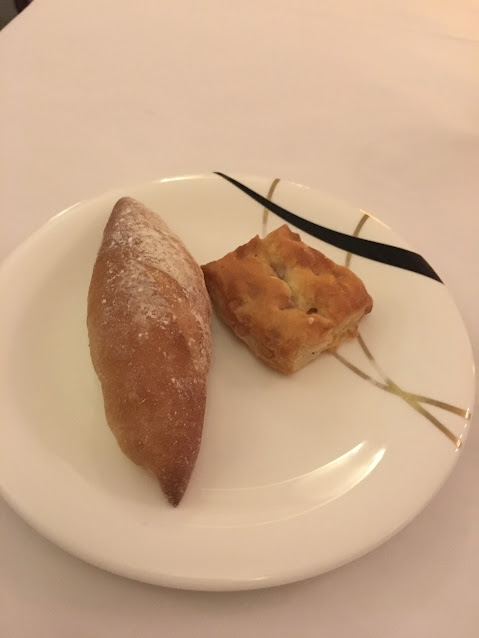 侍應拿著熱騰騰的整籃麵包給我選,當中應該有四五款吧!我選了這兩款,真的很好吃,特別是右邊的酥餅!這些麵包你可以一直吃,他們會再來問你要不要的。