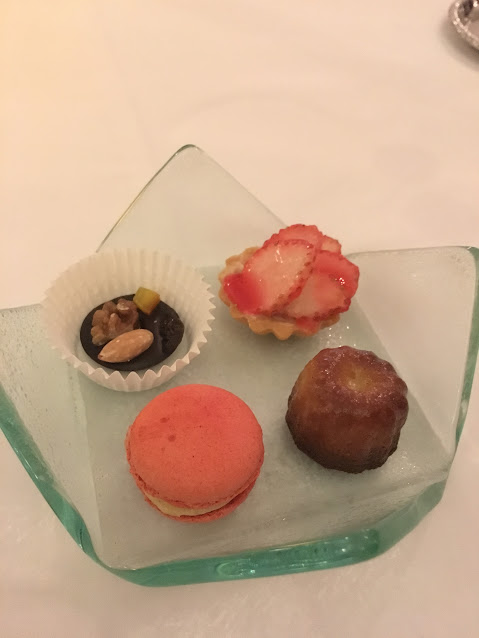 果仁朱古力,士多啤梨撻,馬卡龍,還有Canele,每件都甜度剛好,而且超!好!吃!還有那杯熱的香草茶之外,那一小杯,是橙酒!酒精濃度不低的橙酒!