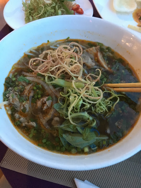 呢碗叫Spicy Hue Style Beef Noodle Soup,同事話,唔係平時果隻牛河,呢隻係帶辣,米線款,當地人好鍾意食,問我點解識點。我話,睇餐牌試下新野之嘛。越南既辣唔會好辣,此處湯底亦無味精,所以好唔錯。呢碗,六十蚊港紙左右。