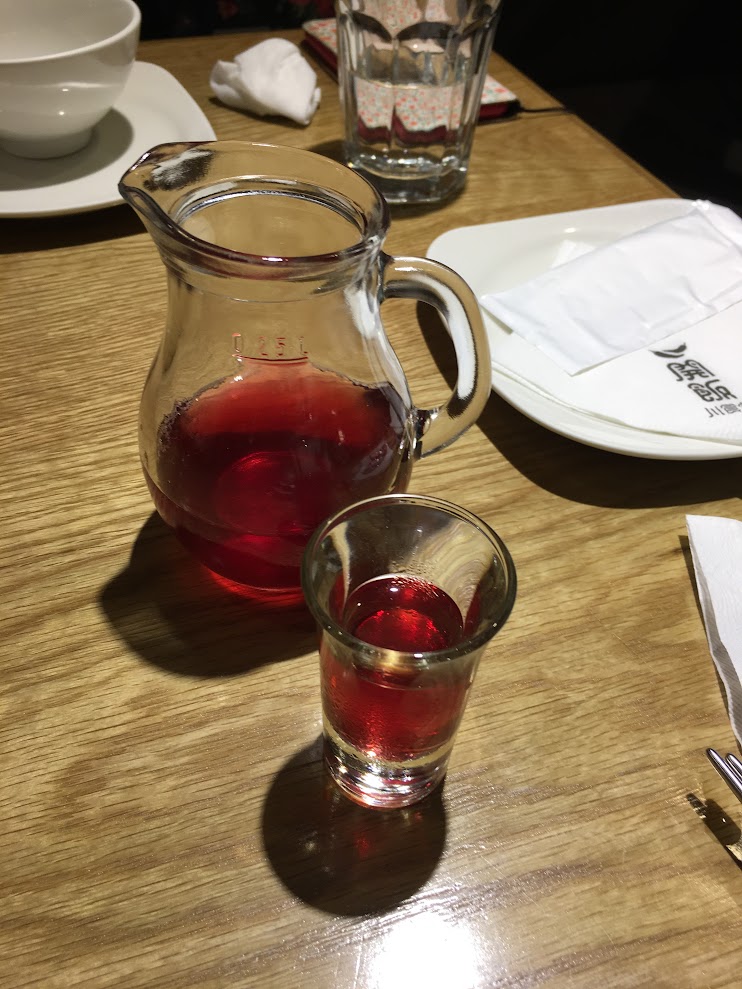 坐低,未點菜,侍應首先奉上一瓶蔓越莓果醋,天氣熱,飲呢個非常開胃,免費提供: