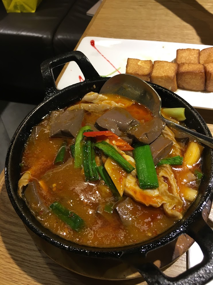例如呢個五更腸旺啦!肥腸加鴨血,個汁非常惹味好送飯,我就食葷朋友就囉汁黎送飯或者配其他食物,不得了!