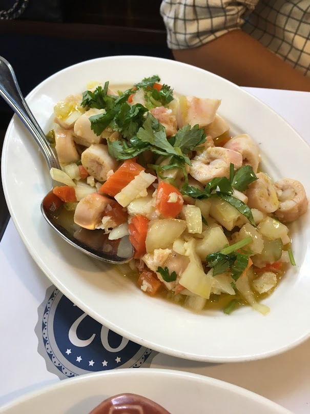 馬介休薯仔球,常見菜式,但能夠做到咸香之餘薯仔味亦夠薯蓉又滑外面又炸得香口就唔多喇。呢間餐廳果然有料到。八爪魚沙律,八爪魚肥美鮮味又煮得剛剛好,用上葡國橄欖油加上蒜蓉西芹蘿蔔洋蔥,若果用呢個減肥我OK架!
