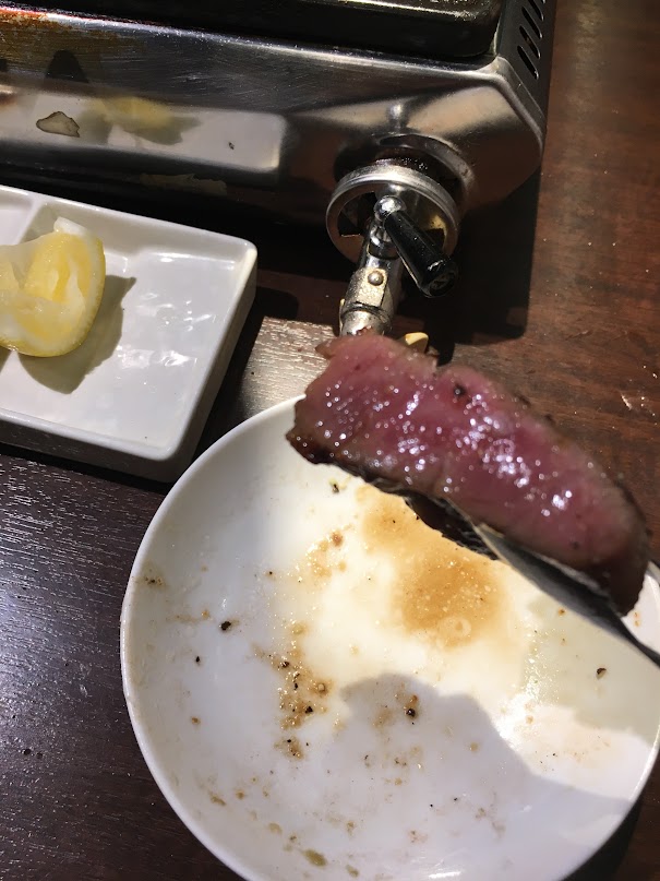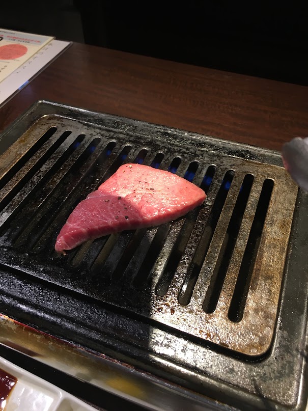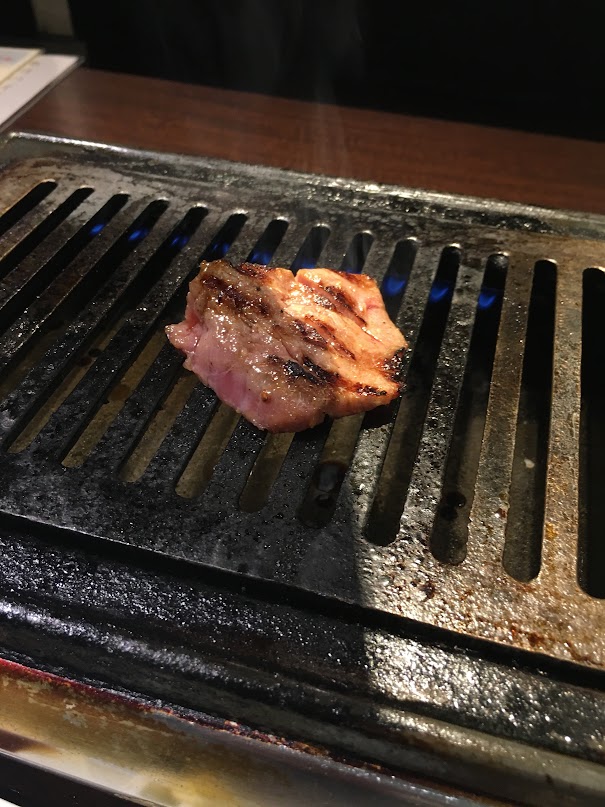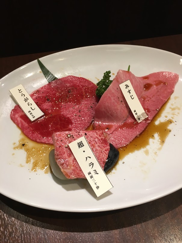 首先要讚讚店員:佢地用有限英文努力解釋我知,每一樣要點烤(基本上紙上面都有寫,例如,一面三十秒),店員會講埋用中火定大火,應該配上鹽、青芥定係檸檬汁。你絕對唔駛擔心你唔識烤而浪費。究竟呢七個部位係乜呢?牛腰內側赤身肉、特上牛舌、菲力、大拖羅牛肋肉、牛肩肉 (肩胛骨附近,因為形狀似唐辛子故名)、牛肩肉 (肩胛骨下的稀少部份)、超。牛胸腹,而每一件,放入口,真係欲仙欲死!