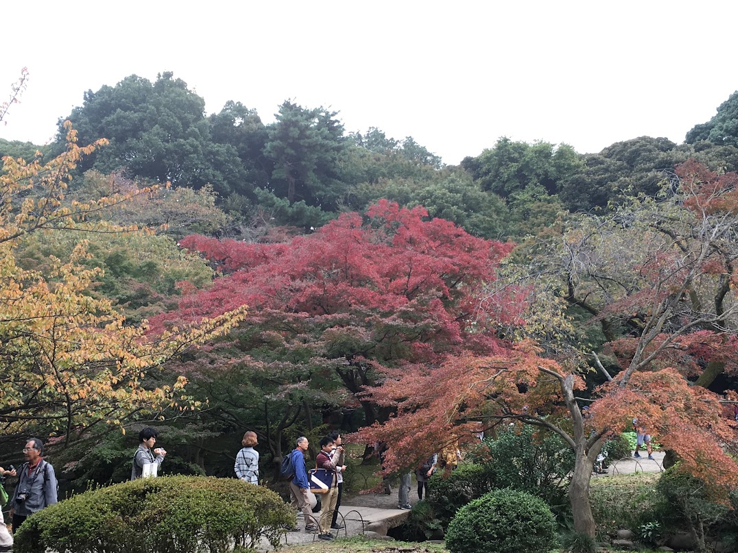 新宿御苑曾經是日本皇室的所有地,裡面包括了日式庭園、法式幾何庭園及英式風景庭園,而且有很多櫻花樹及楓樹,所以,我這次剛好看到慢慢轉紅的楓樹。我在兩點半到達,後來才知四點半就閉園,發覺我不知不覺在裡面接近兩小時,只是輕輕鬆鬆的走了一半左右。