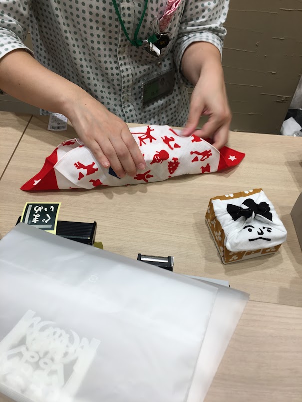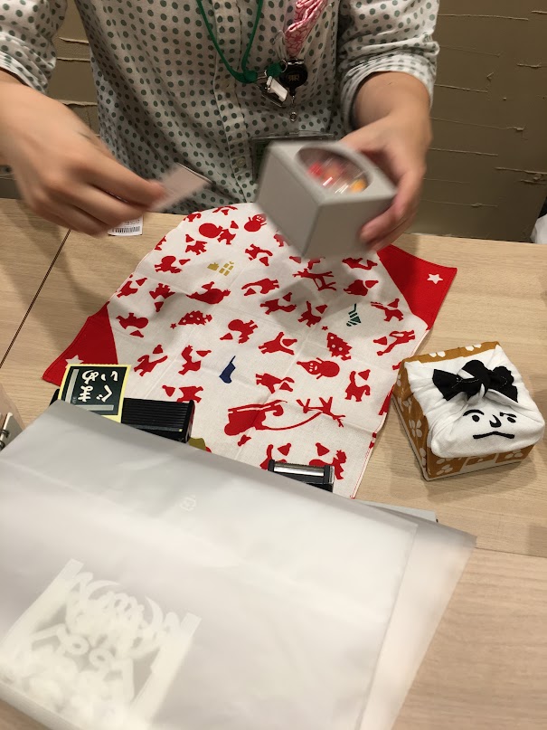 咦若果你睇到呢度,彩蛋來了:我食飽未番酒店前搭左落東京JR站買手信,點解呢?東京駅內B1呢間叫Mamegui,玩法係,你揀一盒小食(可以係糖啦果仁啦等等),再揀一條小手帕,俾完錢,店員就會幫你咁咁咁整:
