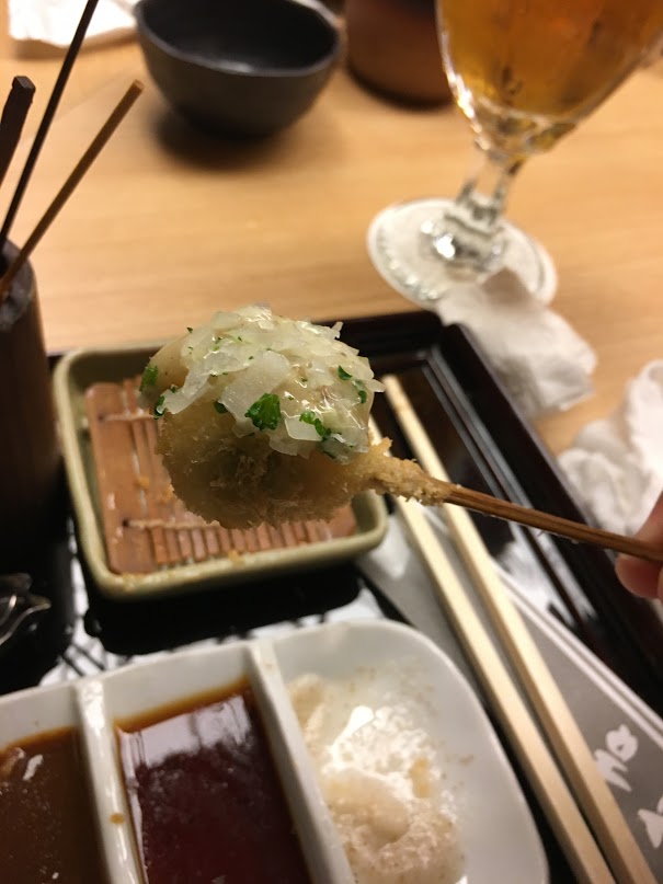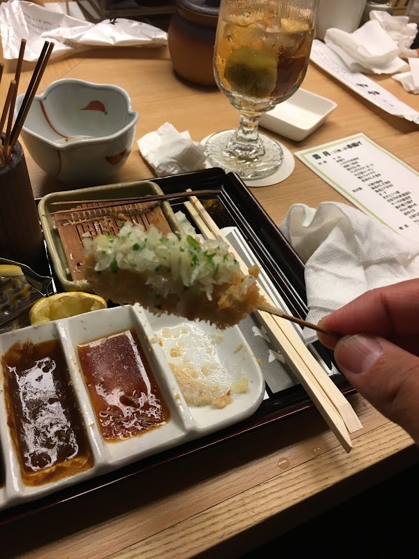 是次旅程最後一頓晚餐,我又試亂入,走左去新宿立吉,食乜架呢?炸串!六點二十分到達外面坐左好多人諗住都無乜機會,典知查詢一下,佢地問:一個小時後可以嗎?當然得啦!我咪去附近百貨公司行下囉!