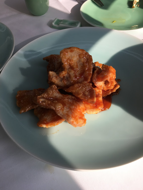小館老式鍋包肉,失望。好似輕輕拍上生粉既咕嚕豬肉片,份量少,味道一般,七十七蚊。