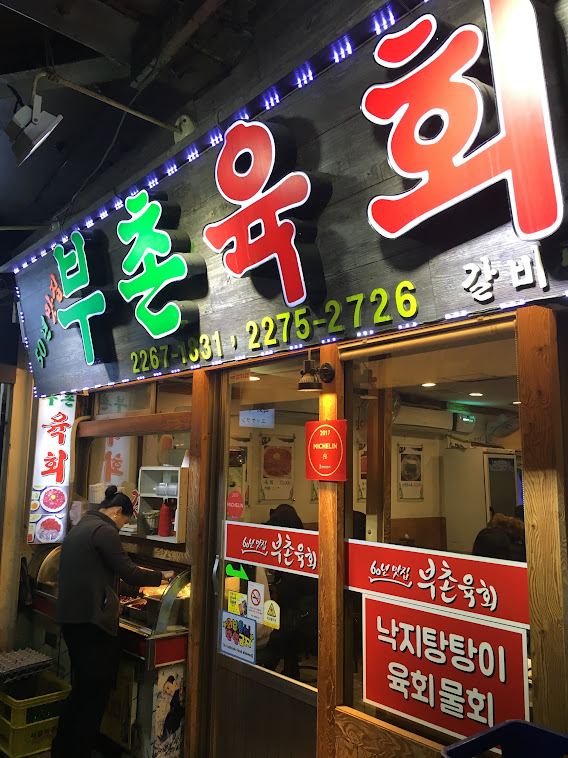 首先是廣藏市場,作為牛迷的我,後來才得知要食又平又靚生牛肉就要去廣藏市場。剛巧今次出發前無太多時間了解有乜餐廳值得去,然後發現餐廳死亡之吻車呔人剛剛出左首爾指南,於是睇一睇,竟然又有一間廣藏市場食生牛肉榜上有名播!